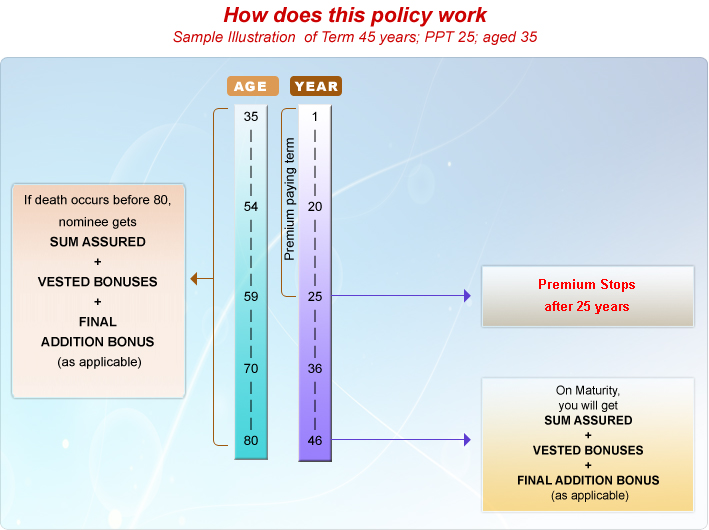Lifetime cover to the extent of Full Sum Assured + Bonus + Final Addition Bonus (as applicable)