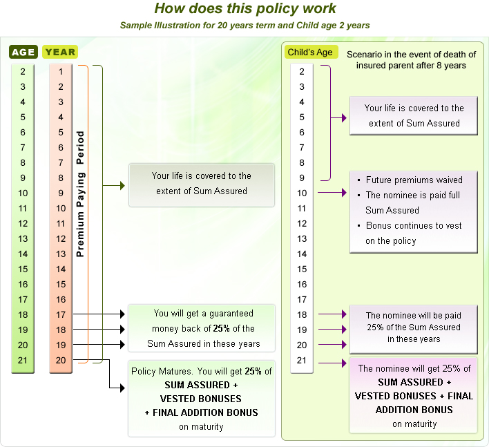 • This plan is specifically designed to fulfill the higher education needs of the child and family income provision in a single policy